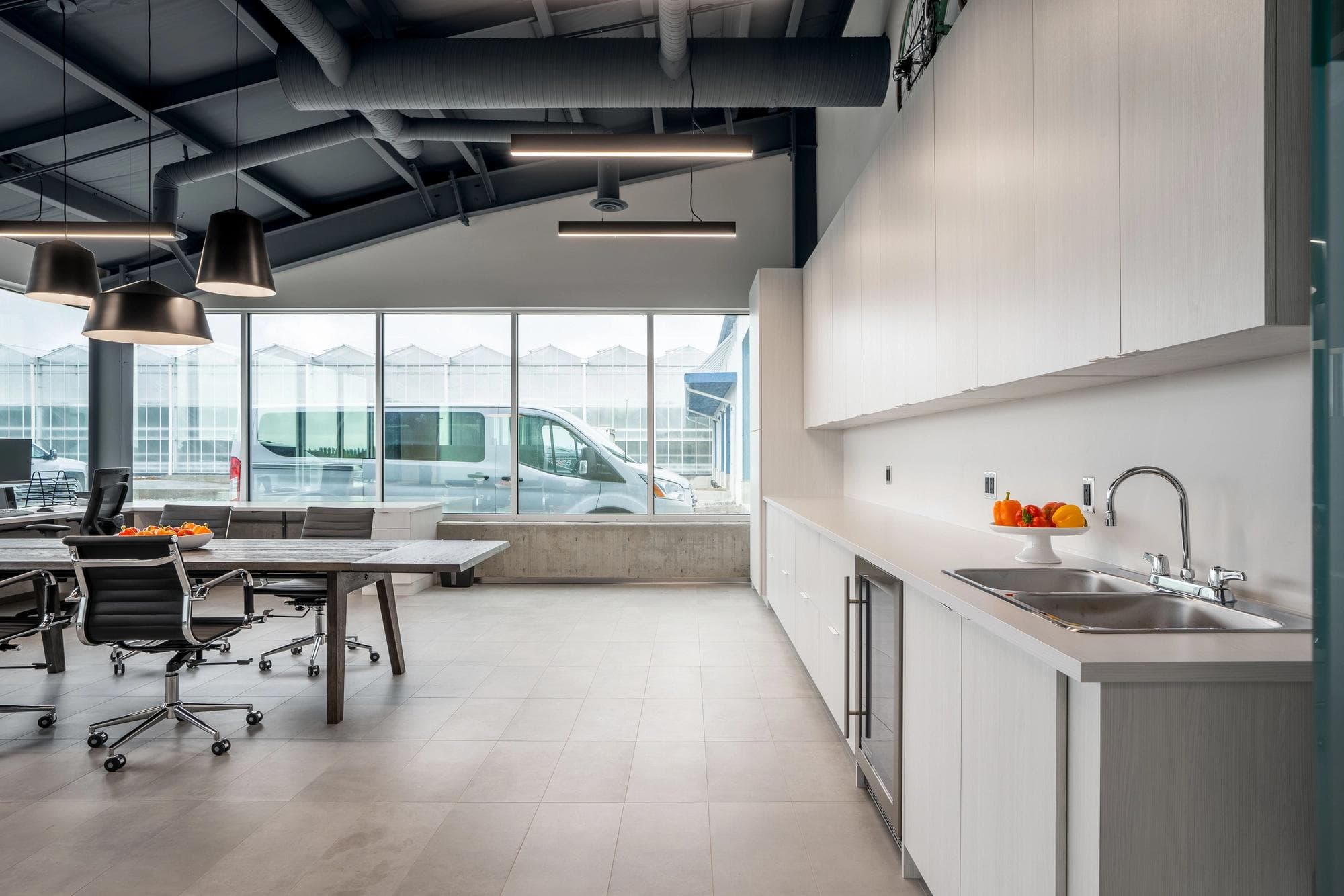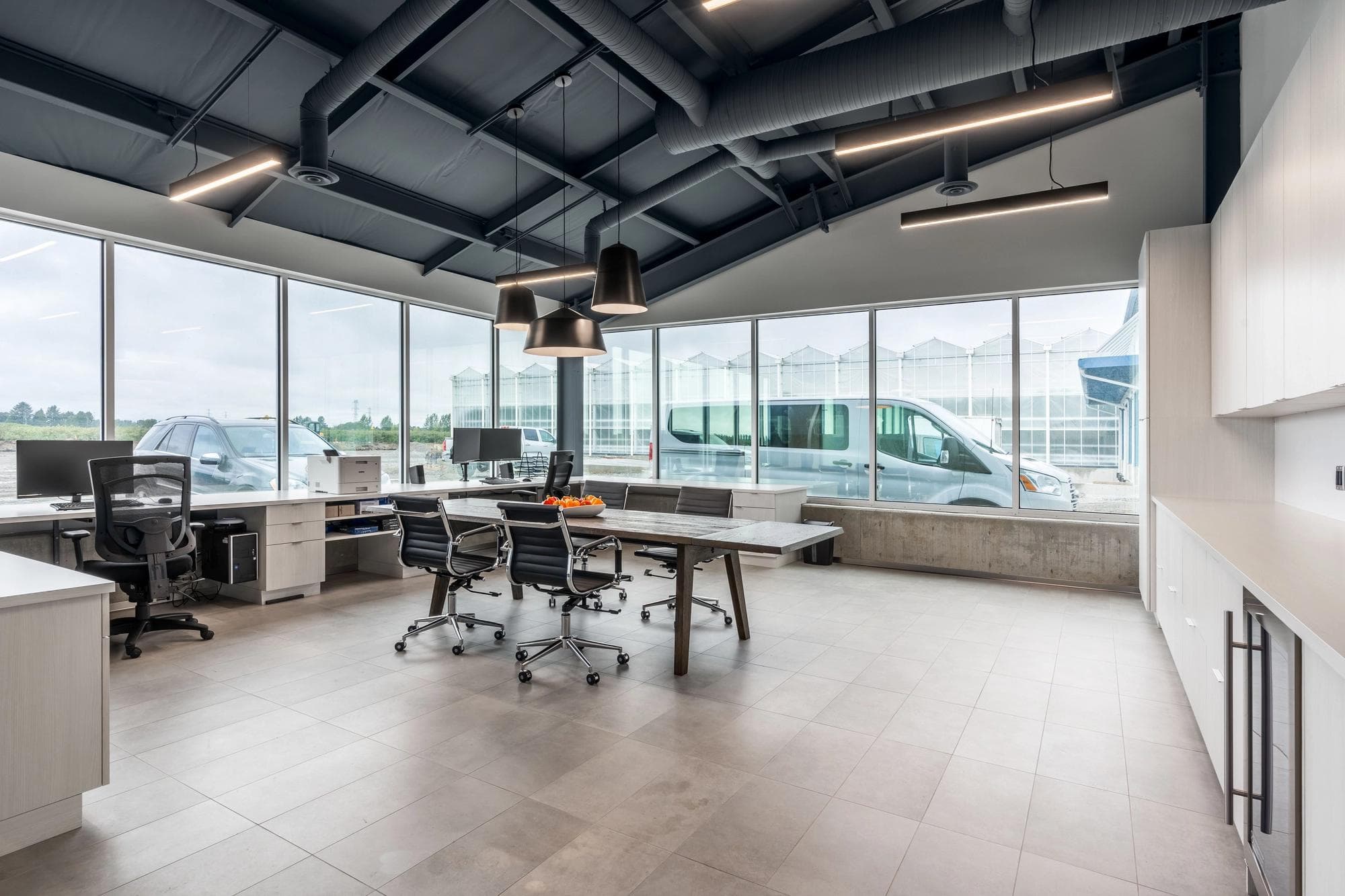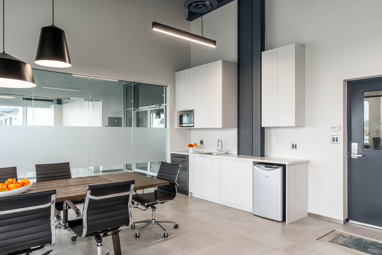 As Sunnyside Produce rapidly expanded its agricultural greenhouse operations in Ladner (a suburb of Delta, BC), they needed practical office spaces and comfortable employee service areas to accommodate their growing team. Kenorah stepped in to build internal structures that would house multiple offices, meeting rooms, kitchenettes, lunchrooms, and bathrooms. Through close collaboration, we selected industrial finishes that enhance the aesthetic appeal while matching the functionality required for easy maintenance in this busy production environment.