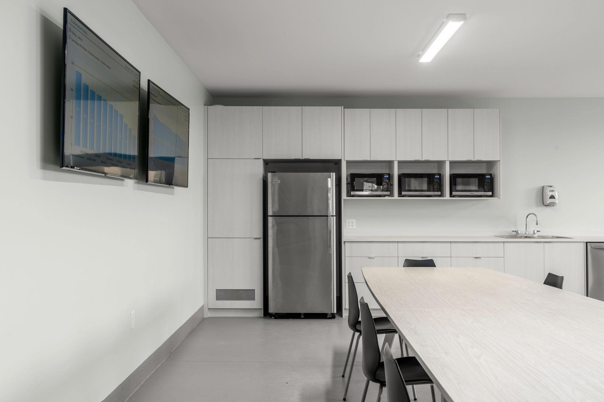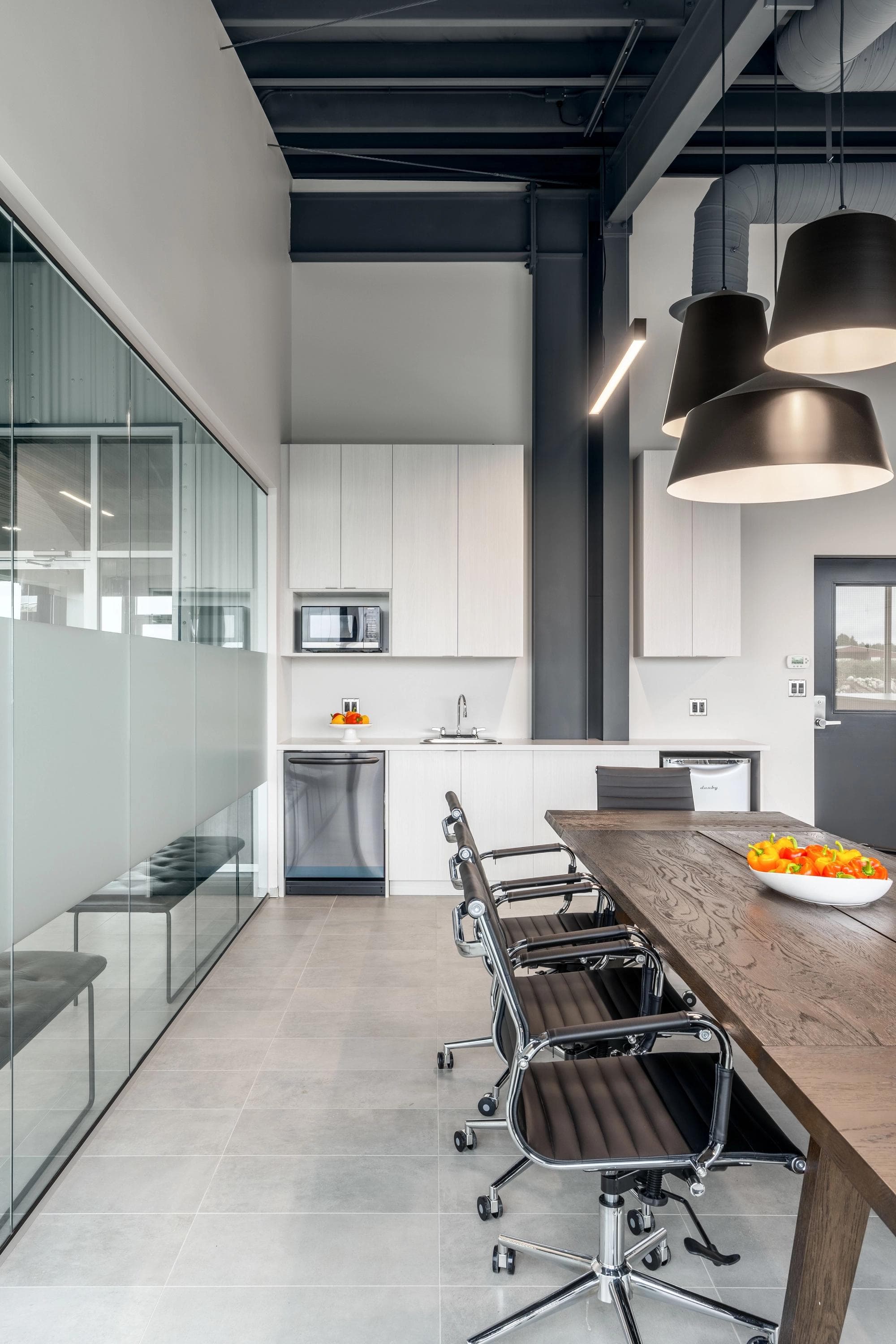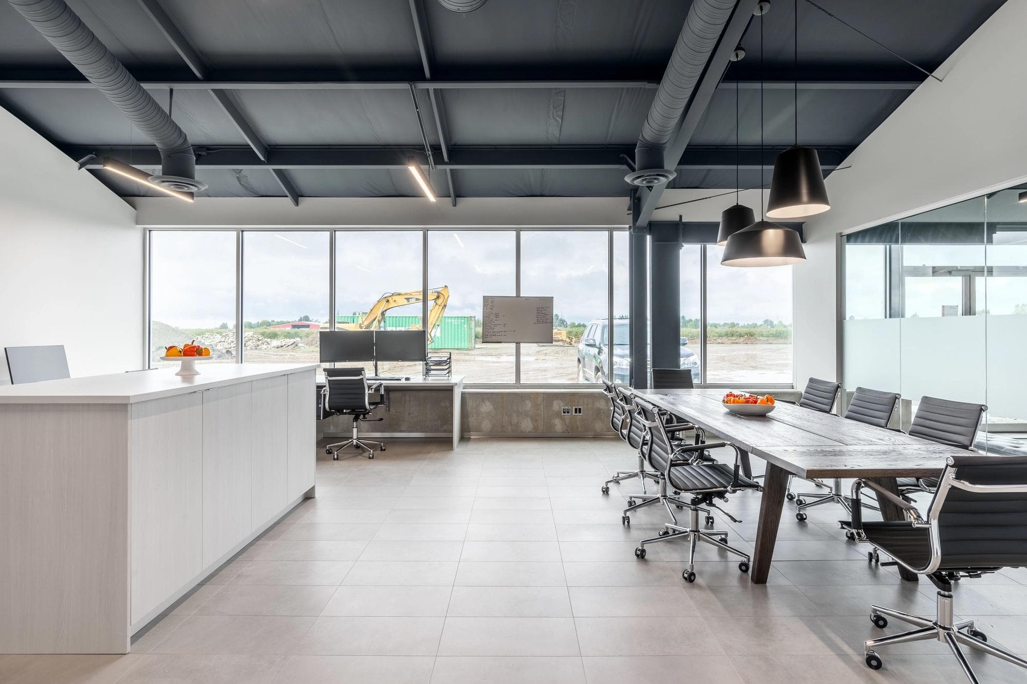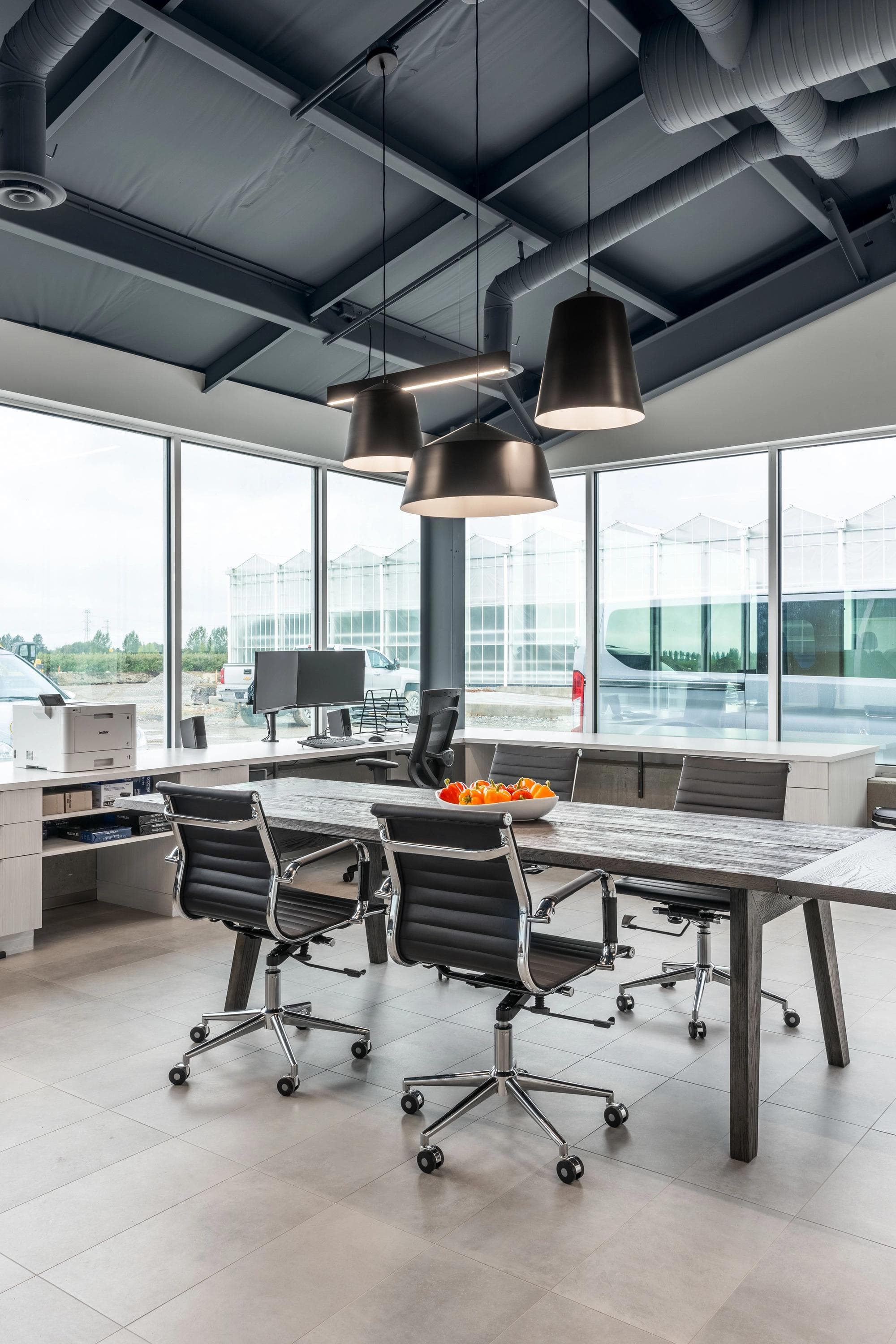 As Sunnyside Produce rapidly expanded its agricultural greenhouse operations in Ladner (a suburb of Delta, BC), they needed practical office spaces and comfortable employee service areas to accommodate their growing team. Kenorah stepped in to build internal structures that would house multiple offices, meeting rooms, kitchenettes, lunchrooms, and bathrooms. Through close collaboration, we selected industrial finishes that enhance the aesthetic appeal while matching the functionality required for easy maintenance in this busy production environment.