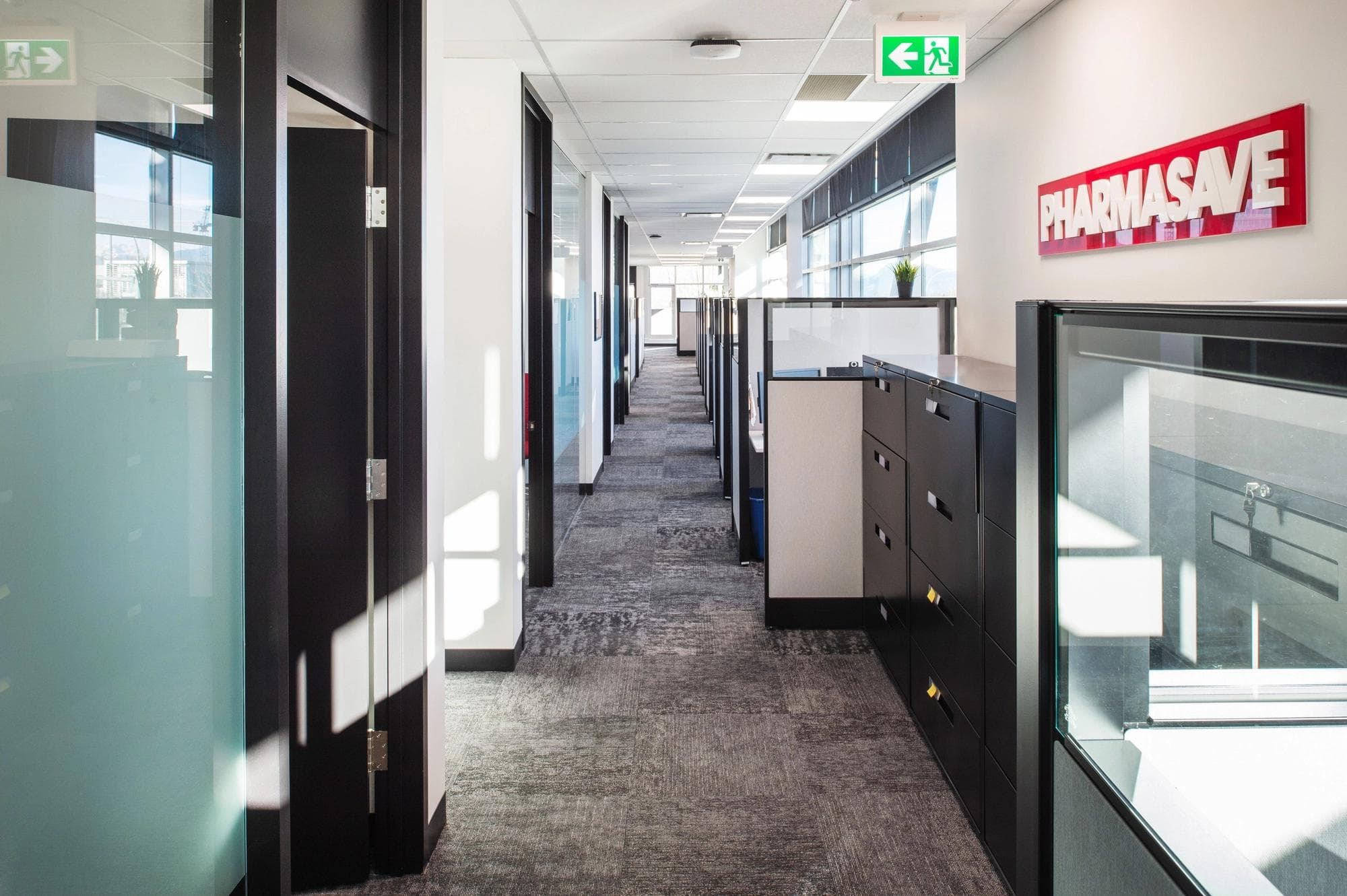 Kenorah partnered with Pharmasave Drugs to renovate their national office located at 8411–200th Street in Langley, BC. With a network of independently owned pharmacies across Canada since 1981, Pharmasave required an office reflecting their reputation as a reliable, community-focused brand. Our team delivered a modern, highly functional office environment, thoughtfully designed to support efficient operations and collaboration while highlighting Pharmasave's commitment to quality and community care.